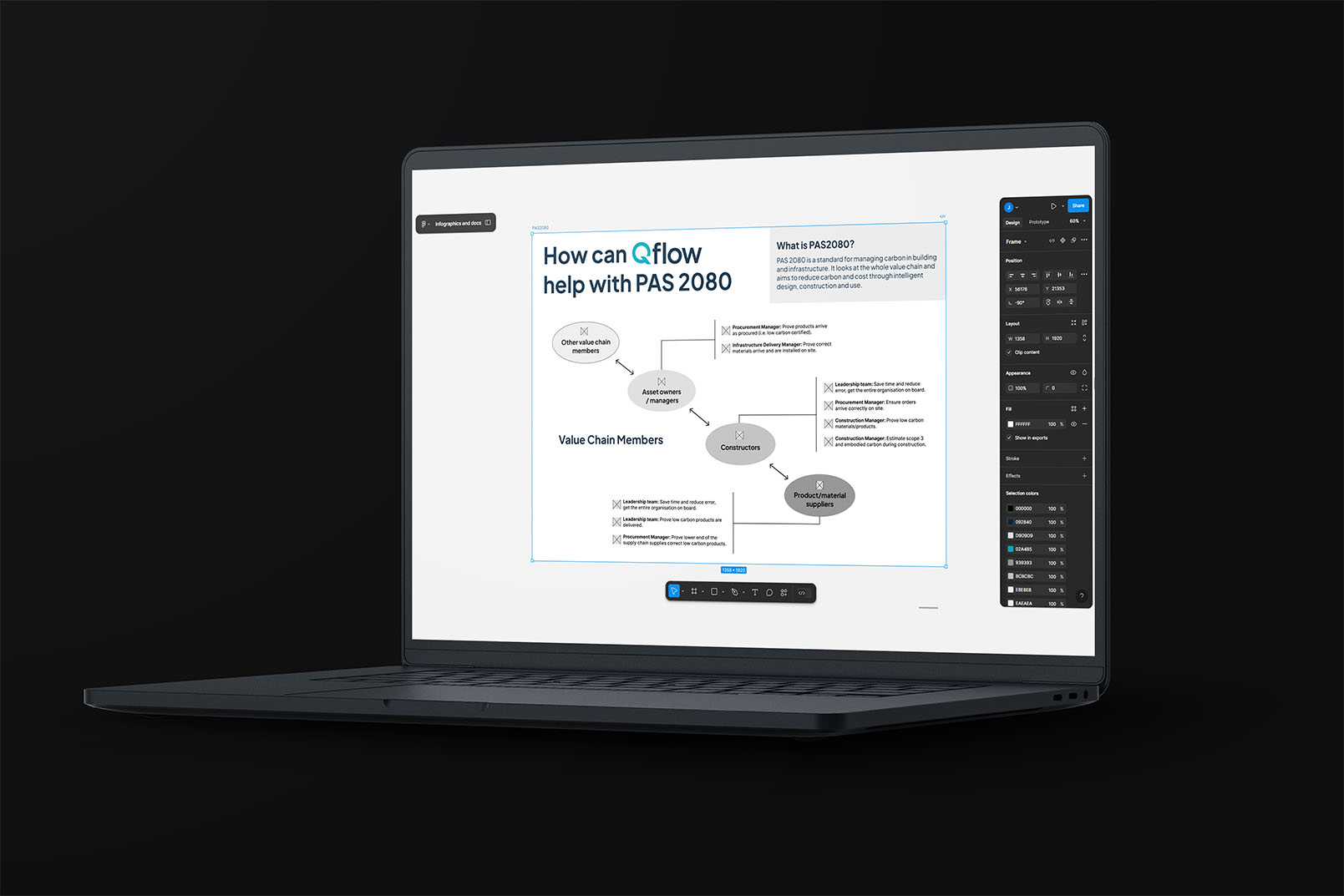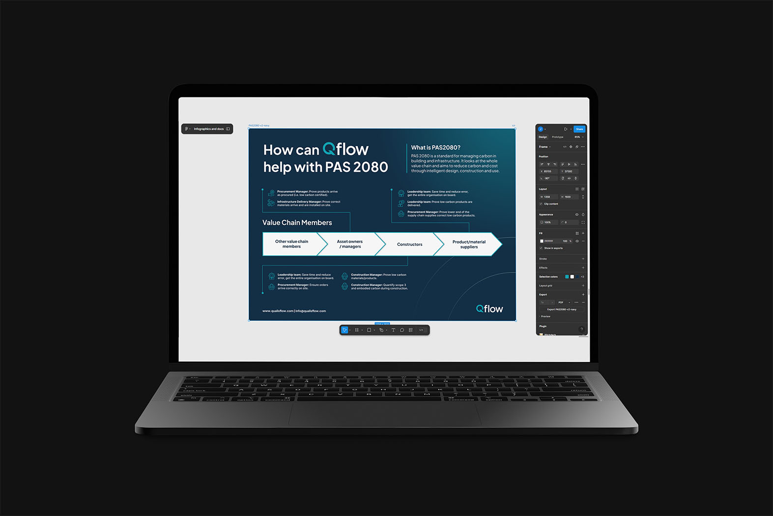 Create materials for the sales team showing how Qflow helps customers meet standards like PAS 2080. Build a cohesive set of marketing assets aligned to Qflow’s refreshed brand. Make the materials scalable so they grow with the company.