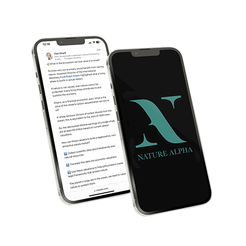 Some of Nature Alpha's achievements during the period of our work together include: Nature Alpha's founder, Dr Vian Sharif spoke at several events during COP26, including on a panel with the Institute of International Finance. Nature Alpha ranked as one of ten globally outstanding solutions in the IRCAI Global 2021 Top 100 List by the United Nations Economic, Scientific and Cultural Organisation (UNESCO) and International Research Centre on Artificial Intelligence (IRCAI).